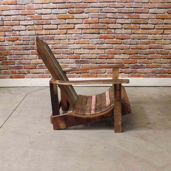 Reclaimed Wood Adirondack Chairs & Table Set | Chairish